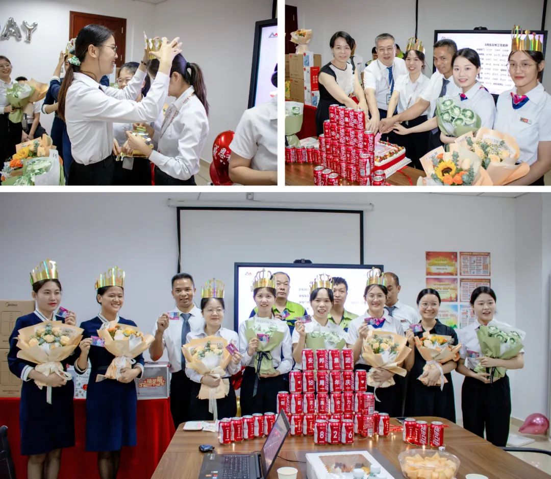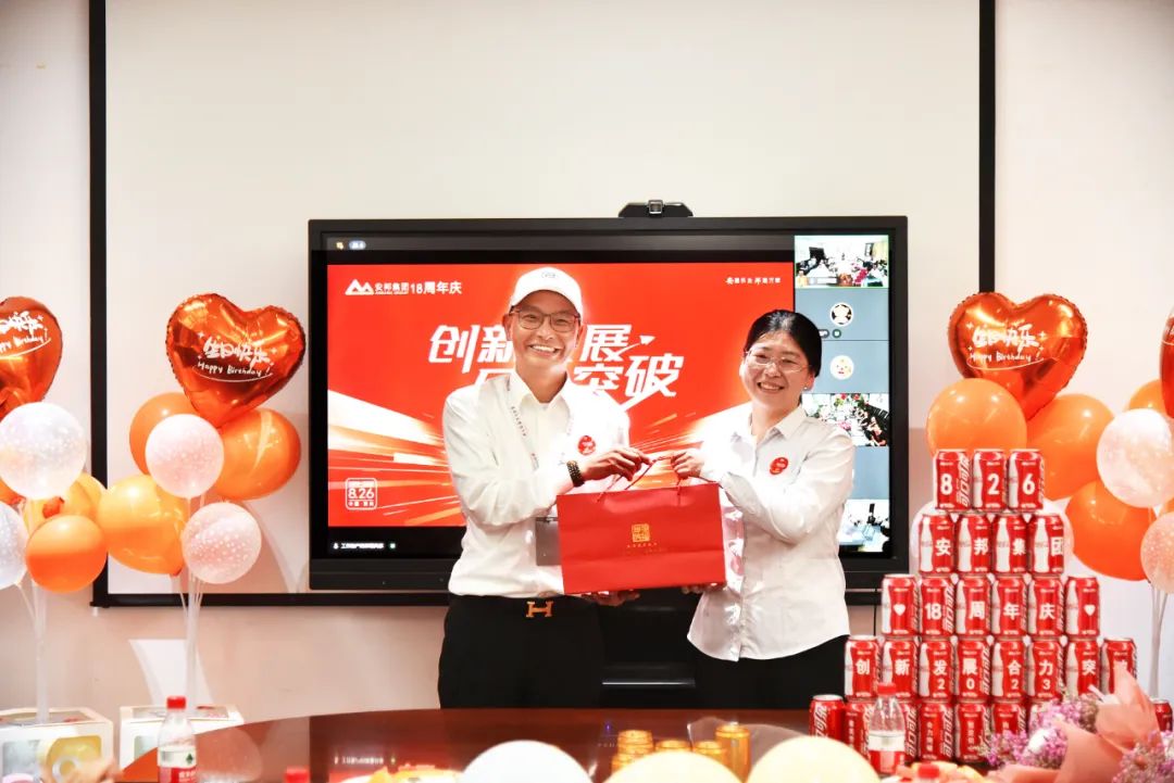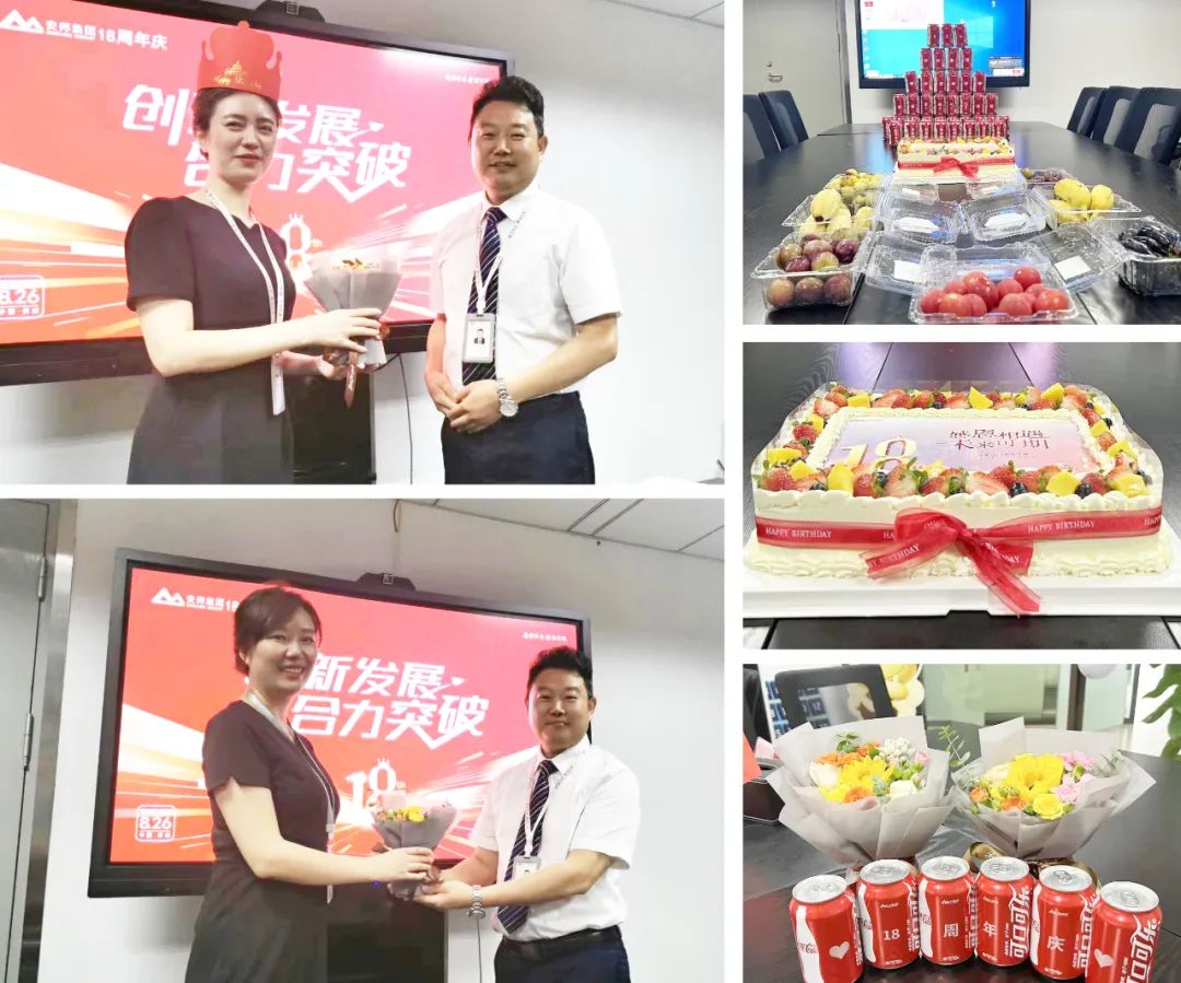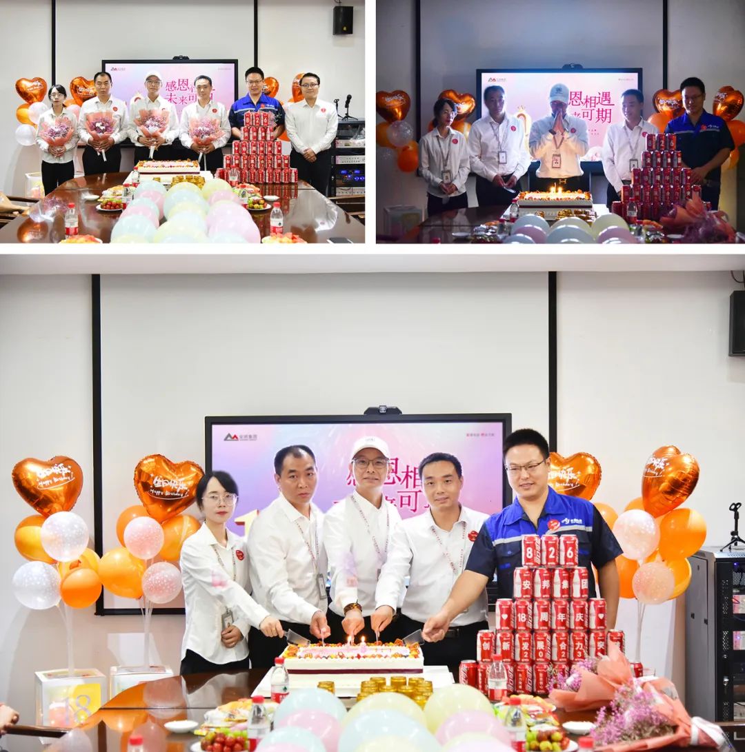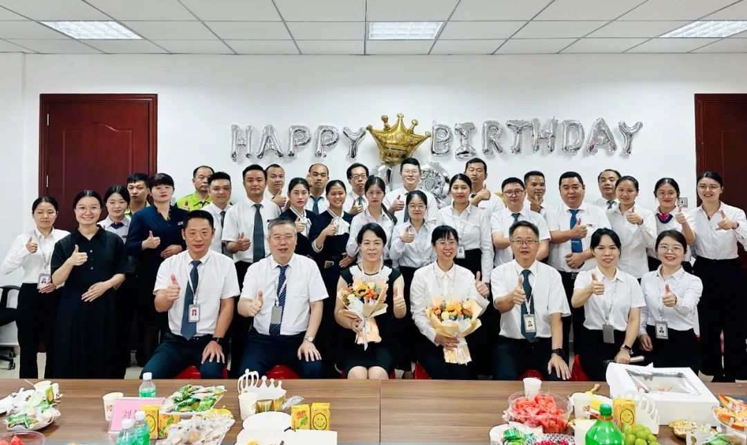 8月份,華南區域有30多名員工迎來了自己的生日,其中約有半數人仍堅守在各自的崗位上,公司爲能(néng)夠來到現場的壽星們派發(fā)了鮮花和生日禮物,集團總經(jīng)理李玲、華南區域總經(jīng)理尤加良一起(qǐ)爲壽星們分發(fā)司慶蛋糕。