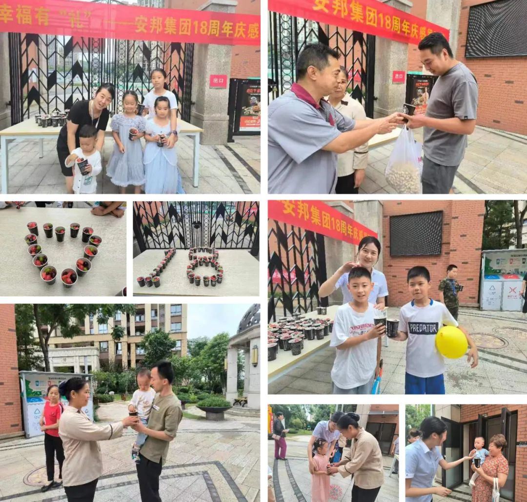 爲答謝客戶一直以來對(duì)安邦物業的支持、理解與配合,司慶期間,安邦物業組織開(kāi)展了“美好(hǎo)相伴,幸福有‘禮’”18周年司慶感恩回饋活動,各住宅項目積極組織開(kāi)展便民服務和親子互動活動。
