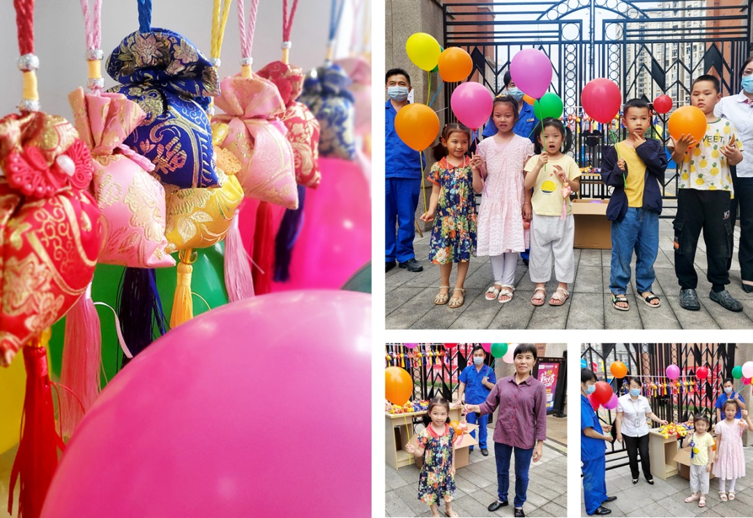 兒童節當天,藍桂雅苑物業服務中心精心準備的香包和氣球,受到了業主小朋友的格外青睐。