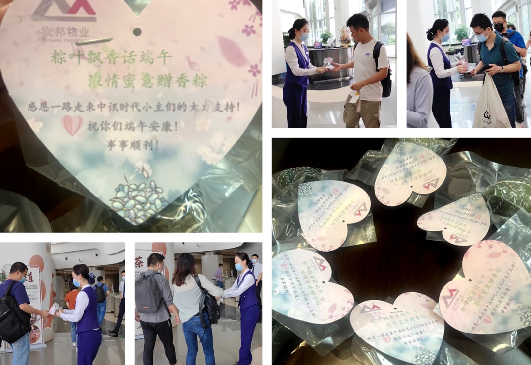 端午節前夕,中訊時(shí)代物業服務中心爲寫字樓的大朋友們送上香甜可口的粽子,讓上班族在辦公場所也能(néng)感受到“家”的味道(dào)。