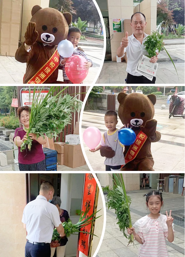 端午前夕,每位中悅綠州郡的業主在進(jìn)入小區之時(shí)就(jiù)會(huì)收到服務中心送上的一把鮮綠的艾草和菖蒲,小朋友們也會(huì)收到可愛的布朗熊人偶派送的氣球;同時(shí),在節日期間,物業服務中心還(hái)會(huì)沿襲傳統習俗,用雄黃酒對(duì)小區重點區域進(jìn)行噴灑消殺,著(zhe)實讓業主們感受到了濃濃的傳統民俗文化。
