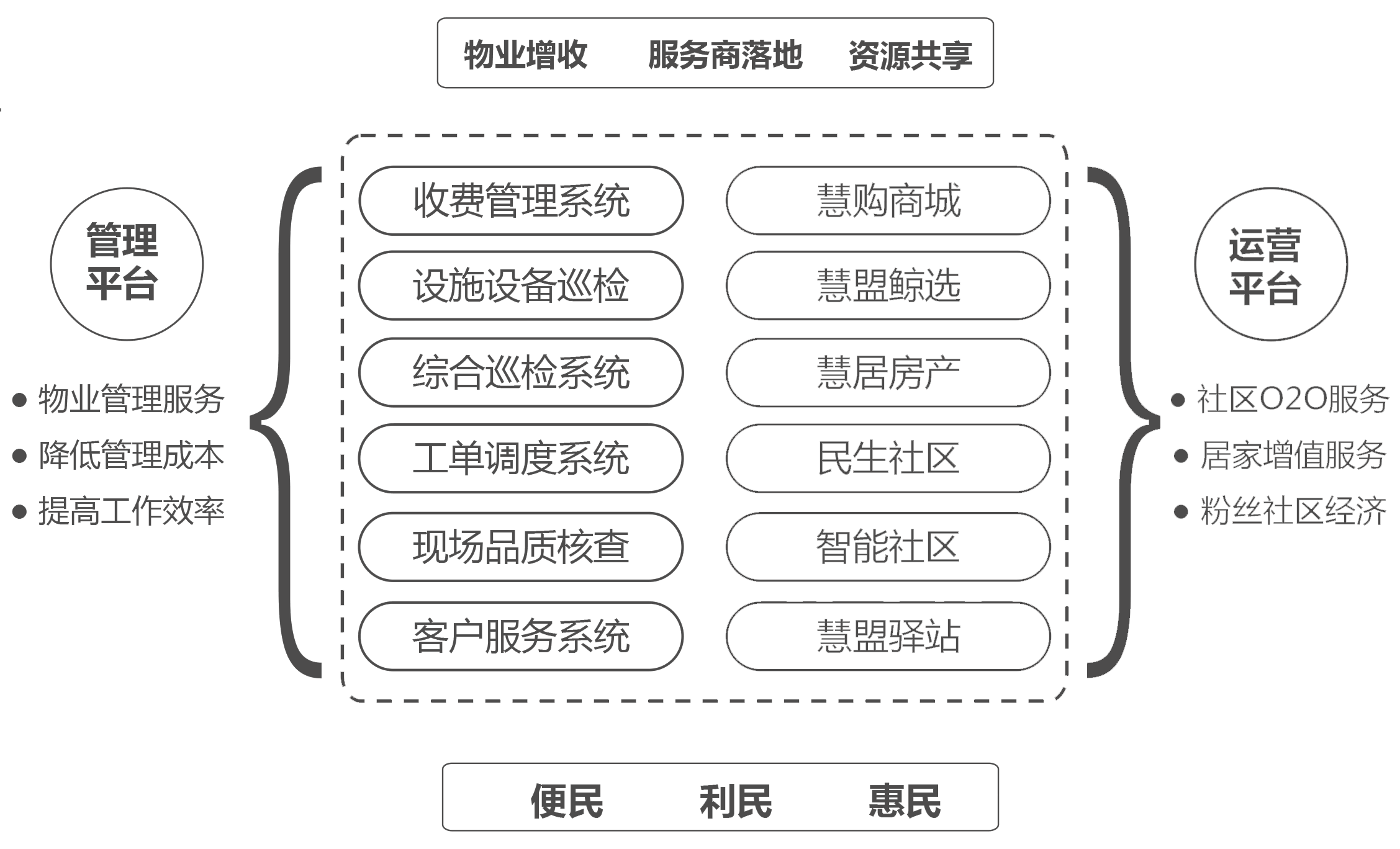 雲翼方爲物業行業打造的智慧社區産業平台“慧盟管家”是以“物聯網+大數據+雲平台+人工智能(néng)”爲基礎,爲物管及業主提供線上線下互融互通的立體化服務,全方位滿足客戶多元化的服務需求; 涵蓋了品質物業、資産管理、智慧物聯、平台創新(智慧農貿、社區新零售、産地溯源)等全流程解決方案,從線上到線下,從員工到客戶,以智慧服務生活;緻力于爲政府、物業、業主、供應商、服務商構建一個共享共赢的生态平台。